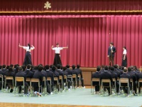 1年生のオリエンテーション最後に、生徒会主催の2、3年生による部活動紹介が行われました。合唱部の元気のいい歌声をスタートに文化部が作品や演奏を交えながら部紹介を行いました。続いて運動部も挨拶だけではなく、実際のトレーニング等を実演する部もあり、1年生もじっくりと各部の様子を見ていました。今日から3日間、体験入部期間となりますので、1年生は3年間続けられるものをしっかり吟味してください。
