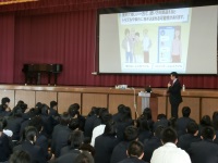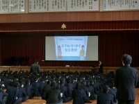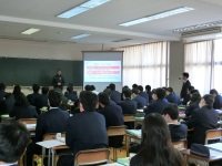 今日は3限目に全校生徒対象にNTTコミュニケーションズから講師の方を迎え、携帯電話マナー講座が行われました。具体的な動画を交えながら非常にわかりやすく説明していただき、生徒も自分に身近な話題として受け取ることができたと思います。特にコミュニケーションアプリでは安易な書き込みがトラブルの元とならないように、十分に配慮して使用してください。