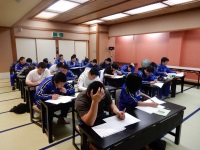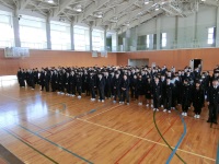 学年末考査最終日の今日、試験終了後に1、2年生で卒業式の式歌練習を行いました。寒い寒い体育館の中での練習だったので、はじめは少し元気がなかったですが、最後に新田先生や日野先生の熱い指導もあり、最後には1,2年生の元気な声が響いていました。来週の卒業式を盛り上げるためにもぜひ頑張ってほしいと思います。