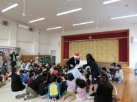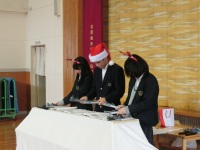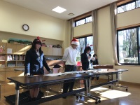 今日は「幼児教育音楽」の児童館実習最終回でした。お客さんは2組+児童館の先生で総勢7人でしたが、とても暖かく迎えてくれました。始めにジングルベルをスズやタンバリンと合わせて演奏した後、トーンチャイムでクリスマスソングを5曲演奏し、最後にあわてんぼうのサンタクロースを歌って踊りました。トーンチャイムの音色の心地よさに途中で寝てしまう子どももいましたが、3か月の赤ちゃんもにこにこと喜んで見てくれて、生徒もとてもうれしそうでした。