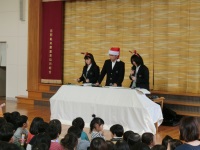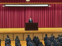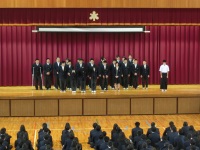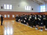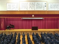 今日は2学期最後の大掃除、表彰伝達式、終業式が行われました。運動部、文化部ともにたくさんの表彰伝達が行われた後、弓道で全国大会へ出場する12Hの上田晋平くんから抱負が述べられました。そして校歌を三番まで斉唱した後、校長先生からのお話がありました。各部の頑張りを称えた後、鶴高応援ライブに来てくれたホライジックが、応援するつもりが逆に励まされたと語ってくれたこと、これまでを振り返って自分の中で良くなかったことがあれば直してほしいこと、とどまればくさる、つねに前進など、どれも皆さんの心に響いたのではないでしょうか。また元気な姿で3学期に会えるよう、充実した冬休みを過ごして下さい。