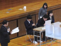 今日は選挙権年齢が18歳に引き下げられたことに伴い、生徒が実際の選挙で必要となる知識を得て有権者としての自覚を促すために模擬選挙が行われました。
