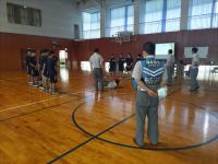 体育館での交流は、まず明和の生徒が企画してくれたゲームを楽しみました。会場にいるみんなが同じくらい楽しんでいました。頭にかぶり物を被って、楽しい雰囲気の中で交流を楽しむことができました。