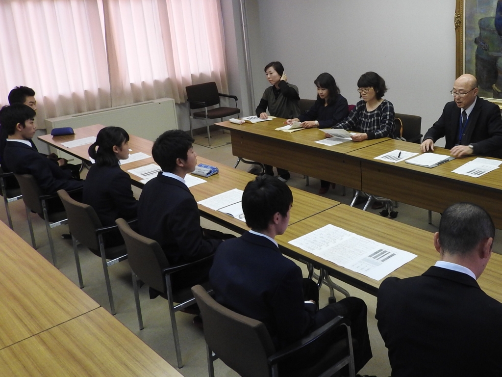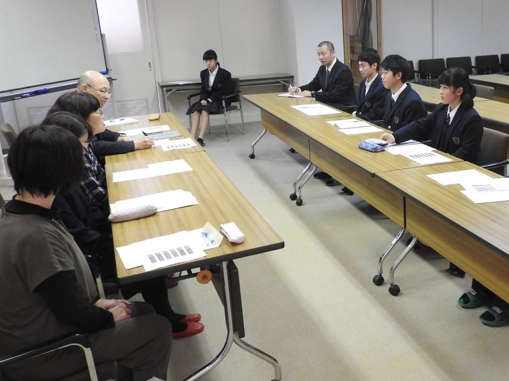 鶴来高校では、11月3日(祝)に学校公開を実施し、行楽日和の好天にも関わらず多数の方々にご来校いただきました。授業参観や、学校評価中間報告会、公開講座(ジオパーク、エアロビクス、和太鼓)、PTAと生徒会役員との懇談会など盛りだくさんな内容でした。来校された方々のアンケートには、「グループ学習が楽しそうで良かった。」「エアロビクスが楽しかった。来年も参加したい。」などと書いていただきました。教育ウィークは昨日で終わりましたが、また来年度もよいものにしていきたいと思います。写真はPTAと生徒会役員との懇談会の模様です。