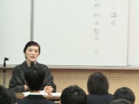 今日は2年生のLHで和田屋のおかみさんである和田智子さんをお迎えし、「おもてなし」についての講話をしていただきました。「おもてなし」とは人を不快にさせないマナーに気遣いの心が加わるということを教わりました。2年生にとって、普段人に対して嫌なことを言っていないかなど、日ごろの行いを見直す良い機会となったのではないでしょうか。