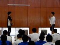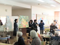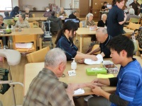 2017年11月2日 18時10分 昨日午後、「介護福祉基礎」を選択している生徒で、3回目となる施設実習に行ってきました。今回は4月から練習を重ねてきたハンドケアを実際に利用者の方に体験していただくというもので、一人3人ほどの利用者の方の両手を丁寧にハンドケアしてきました。皆さん大変喜んでくださり、中にはもう一回してほしいとリクエストされる方も。ハンドケアの後は利用者の方と一緒に折り紙でどんぐりの壁画を作り、体操も一緒に行いました。ハンドケアをしながらいろんなお話もできたようで、笑顔あふれる実習となりました。