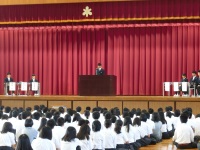 校長先生もおっしゃったように、生徒会役員だけではなく、生徒全員が協力してこその生徒会です。一人一人が協力してより良い学校にしていきましょう!