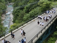 手取キャニオンロードを含む手取川沿い約23kmのコースを全校生徒が保護者、や地域の方々と共に歩きました。今年は最後尾が例年より40分以上早く到着し、全員揃って解散式を迎えることができました。