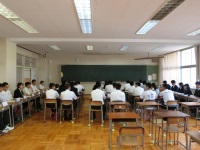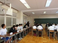 10月2日(月)の6時間目から7時間目にかけて、白山市議会による議会報告会が鶴来高校会議室で開催されました。本校から参加したのは31H全員、市議会からは岡本克行様はじめ市議会議員の方7名、議会事務局より2名の方が参加されました。