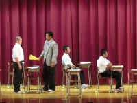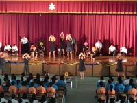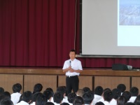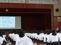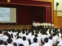 写真は3年生の交流学習における最初の挨拶の様子です。少し緊張気味でしたが帰る頃には明和の生徒さんともかなり打ち解けることができたようで、皆さんに玄関まで見送りまでしていただきました。