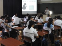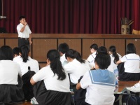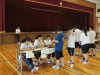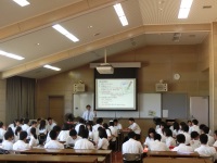 今日は中学生の体験入学でした。暑い中18の中学校からたくさんの中学生が参加してくれました。はじめに生徒会による学校説明会を聞いてもらった後、柔道部、ラグビー部、ソフトボール部、合唱部、和太鼓部、ジャズバンド部によるアトラクションを鑑賞してもらいました。その後、6つの講座に分かれて体験授業を行い、最後に本校生徒の案内で部活動体験や見学をしてもらいました。