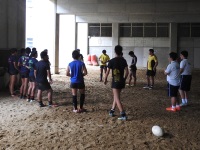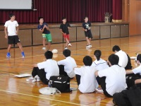 はじめに体育の専門科目が多く設定されていることなど、スポ科の特徴を聞いたあと、各部に分かれての部体験が行われました。あいにくの雨で、外の部は校舎内の活動となりましたが、雨の場合でも充実した部活動が行われていることがわかっていただけたと思います。