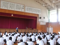 今日からいよいよ2学期がスタートしました。はじめに始業式が行われ、校歌を元気に3番まで斉唱した後、校長先生から「人に喜ばれるような人になってほしい」というお話がありました。