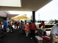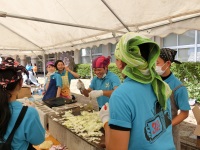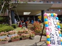 今日は「介護福祉基礎」を選択している3年生で、いつも授業でお世話になっている老人福祉施設「あじさいの郷」の夏祭りにボランティアとして参加してきました。生徒たちは主にゲームコーナーを任され、1~2人で射的やボールすくいなどそれぞれのゲームブースで利用者やその家族、地域の方々などのお客さんを相手に、暑い中、赤い法被を着て頑張っていました。