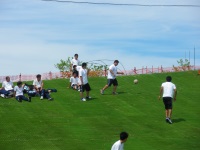 午後からはマリンスポーツを行いました。事前に各自で選択したバナナボートやダイビングなどを楽しんでいます。晴天でとても暑い日となり、まさにマリンスポーツ日和となりました。青い空と澄み切った海を目の前に、沖縄を満喫しています。