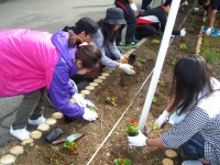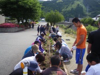 今日は朝8時から白山市フラワーデーの一環として、保護者の方と運動部有志で学校前の花壇に花を植えました。PTA会長や学校長の挨拶の後、一斉に花を運び、手際よく50cm間隔で植えていきました。たくさんの方に協力していただいたおかげで、30分ほどで作業を終えることができました。朝早くから協力してくださった保護者の皆様、本当にありがとうございました。