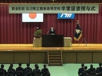 本日は、第69回卒業証書授与式が挙行されました。大変寒い体育館の中での実施でしたが、厳かで落ち着いたいい式でした。学校長が式辞で述べた「鶴高魂」、まさに今の3年生を象徴している言葉だと思います。1、2年生もしっかりとその伝統を受け継いで、「誇りあり学園鶴来」を盛り上げていってください。