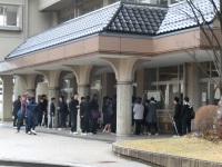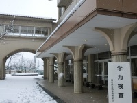 今日から公立高校入試が始まりました。粉雪の舞う寒い日となりましたが、朝早くからたくさんの受検生が来校し、緊張した面持ちで試験を受けていました。明日は社会、数学の2教科と面接、スポーツ科学コースの適性検査が行われます。体調を万全にして頑張ってください。