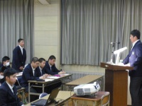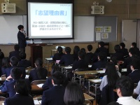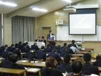 2月2日は、『あじさい』の時間を利用して、「適性テスト」をもとにし、「志望理由を書く準備をしよう」というテーマでリクルートの山本一輝さんに講演会をしていただきました。自己PRができるようになるため、自分を知る材料を集めるペアワークなどをしました。みんなとても積極的に参加していました。山本さんからは①整列が早い②あいさつができる③受講する基盤ができている、という高い評価をいただきました。