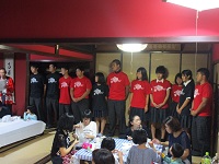 ▲全メンバーでご挨拶 ▲初めての発表にどきどき ▲写真も使ってわかりやすく