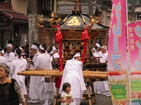 ▲大勢の人が訪れました ▲話にもでてきた御神輿 ▲ほうらい寿司いただきます