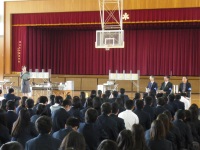 2年生を中心とした新執行部が、校長先生から任命証を受け取りました。