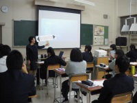今日は、2年生の「社会福祉基礎」の授業で、県の厚生政策課が実施している