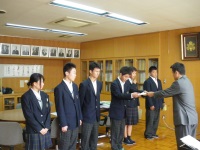 今日の昼休み、校長室で後期生徒会役員認証式が行われました。