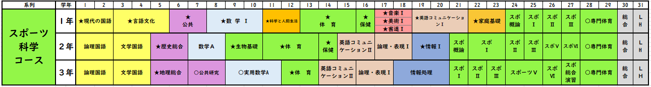 【普通科スポーツ科学コースカリキュラム】
