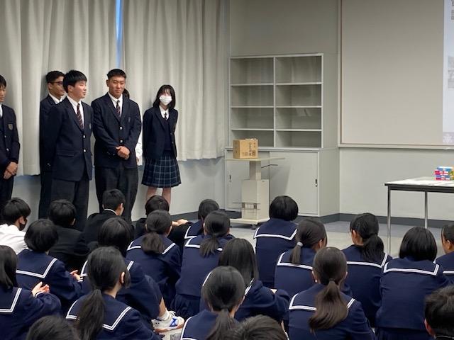 本校地域探究会の生徒の皆さんが、昨日の北辰中学校、本日の鳥越中学校と自分たちが学んだことについて発表しました。発表生徒はそれぞれの中学校の出身者が中心となっています。