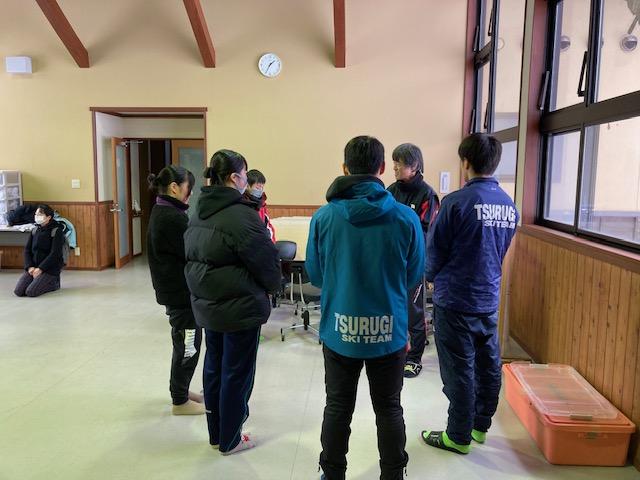 先生の注意事項に真剣に耳を傾けるアルペン、クロスカントリーの選手達