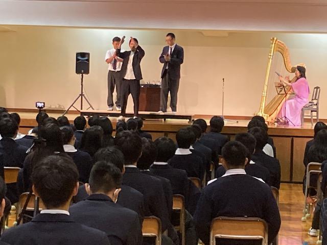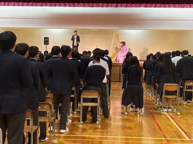 創立80周年記念事業ポストイベントとして、ハープとタップダンスのコンサートが開催されました。ハープ演奏家の葵美妃さん、タップダンサーの浦上雄次さんをお招きしてのすばらしい時間となりました。葵さん、浦上さんそれぞれのパフォーマンスだけでなく、生徒達の体験ありと、大いに盛り上がった午後となりました。葵さん、浦上さん、本当に有り難うございました。
