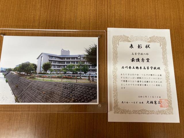 2023年11月13日 15時01分白山市花の会が主催する令和5年度花いっぱいコンクールで本校が最優秀賞に輝きました。ご協力頂きましたPTAの皆さん、小まめに水やりや除草をしていただいた職員や生徒の皆さん本当に有り難うございました。本校は県の審査でも奨励賞に輝いています。