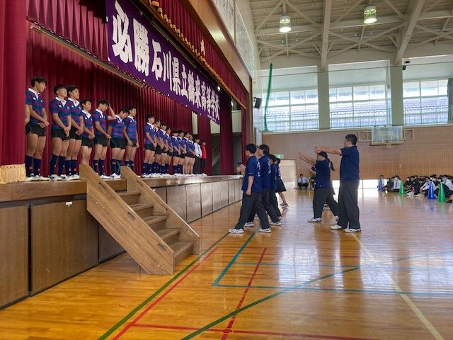 本日は中間テスト最終日でした。テスト終了後の3限目に石川県高等学校ラグビー選手権、石川県高等学校駅伝大会、北信越新人陸上競技大会の壮行式が行われました。ラグビー部は20年間花園から遠ざかっています。日本航空高校石川はなかなかの難敵ですが、一泡吹かしてもらいたいものです。駅伝には本校の選りすぐりの選手が参加します。チーム鶴高で頑張ってもらいたいです。
