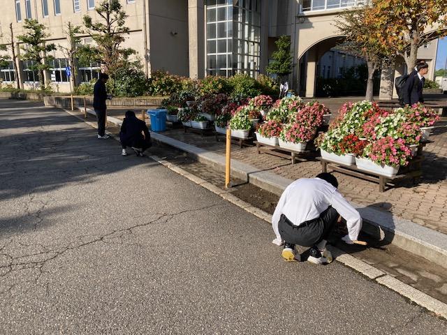 本日4限目生徒達が、学校周辺の草むしりや清掃をしてくれました。私が在籍した当時の旧校舎では、年に何回か校舎周辺の舟岡山の草むしりをしたのを思い出しました。