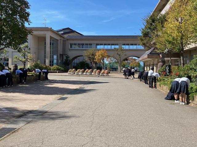 昨日から、挨拶運動とクリーンキャンペーンが始まりました。週末には80周年記念式典が開催されます。大きな声で挨拶をしてくれた生徒の皆さん、校舎前をきれいにしてくれた整備委員の皆さん、ありがとうございます。