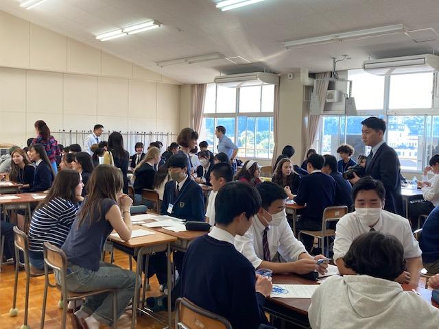 昨日、パリ英国学校から26人の生徒達と3人の先生方が本校に来校しました。今回の引率者の一人であるクレア先生は、以前本校に英語指導員として勤務されていました。この鶴来高校と生徒達、そして日本が大好きになり、日本への修学旅行をきっかけに今回の訪問が実現しました。本校の生徒達と様々な交流をし、日本の学校、少しばかりの文化に触れてもらいました。世界で紛争が絶えない中、このような草の根の交流はとても意義があります。本校の生徒達も、英国学校の生徒達も充実した一日を送ることができたようです。