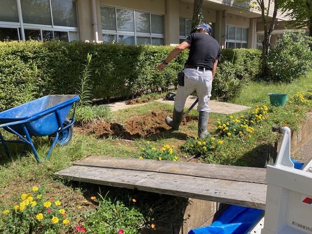 10月21日の本校創立80周年記念式典を控え、記念事業の一環である、本校の校訓を記した石碑の工事が始まりました。完成が待ち遠しいです。14日土曜日に除幕式が行われる予定です。同窓生の皆さん、有り難うございます。