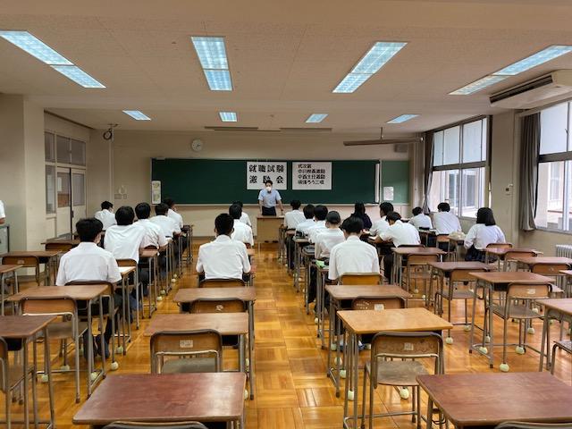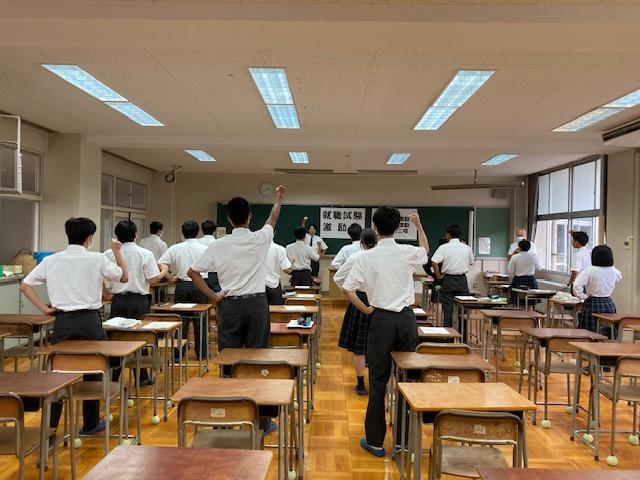 いよいよ今週土曜日から就職選考が開始されます。本日6限目に激励会を開催いたしました。私の方からは、試験までの間、準備を怠らないように話をしました。また学年主任の中西先生からは、今後の学生生活と絡めて激励の言葉がありました。最後に前期生徒会長34H西村君の号令で全員での「がんばるぞ!」のかけ声で会を終了しました。素直な優しい子達ばかりです。悔いのないように頑張ってもらいたいです。