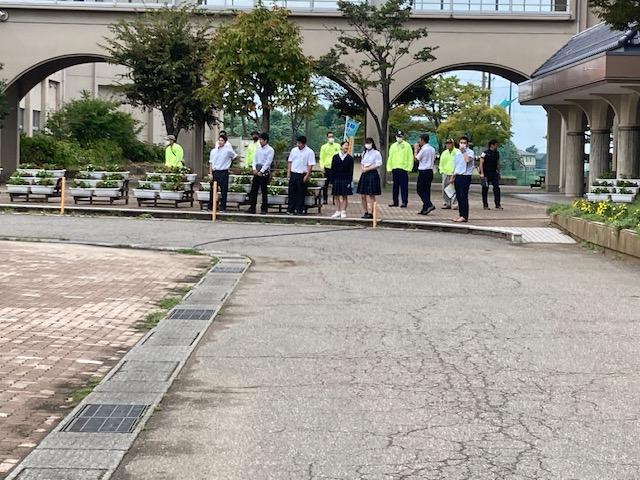 朝6時に白山に向けて出発したスポーツ科学コースの生徒達が元気に帰ってきました。特に3年生の生徒達は満足そうな表情を浮かべていました。天候が少し心配されましたが、現地は雨も降らずとてもしのぎやすい天候だったそうです。学校到着後にスポーツ科学コース主任の新田先生からの「スポーツ科学コースが中心となって学校を盛り上げていこう」の声に生徒達が元気よく「はい」と答えていました。