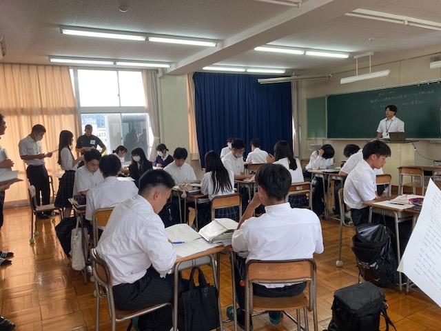 2023年9月25日 16時20分本校卒業生で、柔道部OBの出森陽大さん(順天堂大学3年)が現在教育実習生として後輩の指導にあたっています。今日は研究授業でしたが、緊張した様子も見せずに、保健の授業の「労働と健康」について授業を行いました。数年後には体育教諭として母校に帰ってくることでしょう。