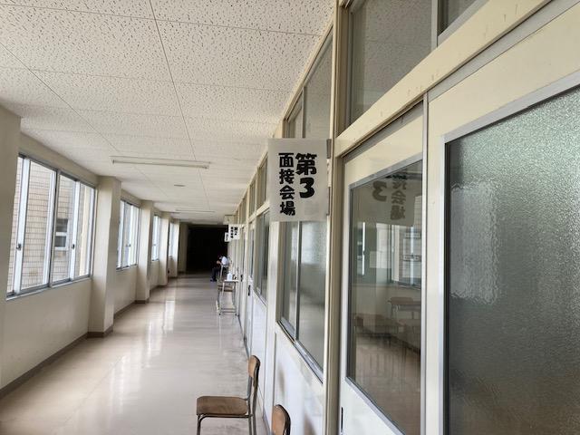 本日、企業の方々、PTAの方々に来て頂き、3年生の就職希望者に対して模擬面接をしていただきました。終了後には、「声が小さい」、「変化球の質問にまだまだ答えられない」等貴重な意見をいただきました。本当に有り難うございました。また、今日来て頂いた企業の方々はすべて本校の卒業生で、私の教え子でもありました。りっぱになった教え子に感動しました。