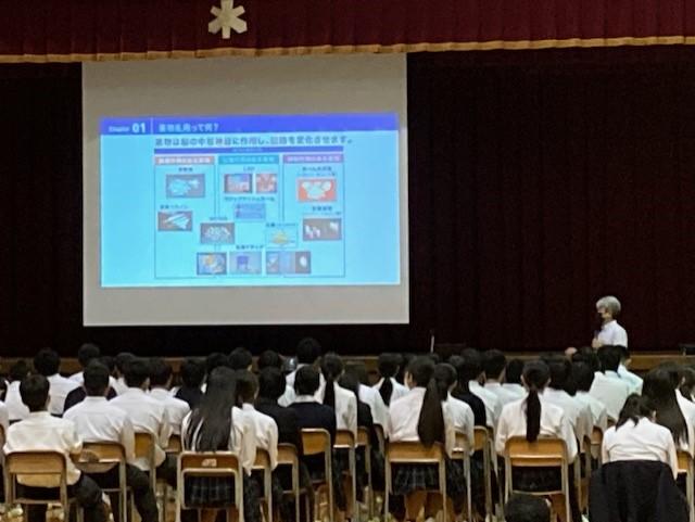 昨日、北陸大学薬学部教授の宇佐見先生をお招きして、全校生徒を対象に薬物乱用防止教室を実施しました。最近は大麻を自宅で栽培し、SNSで販売するという事案も発生しているそうです。薬物は確実に人間を破壊します。誘惑に負けない人間になってもらいたいです。