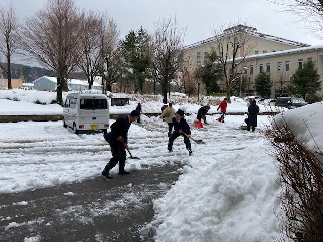 週末に降り続いた雪を、昼休みに14H、24Hのスポーツ科学コースの生徒が取り除いてくれました。ありがとう。