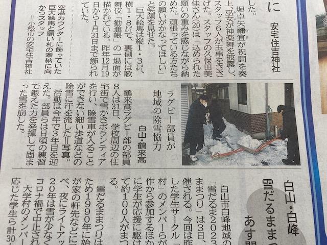 2023年2月2日 15時34分ラグビー部の除雪ボランティアが北國新聞で取り上げてもらいました。