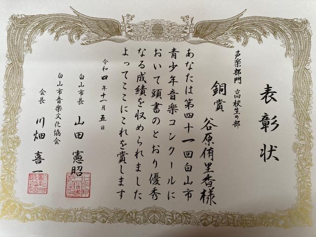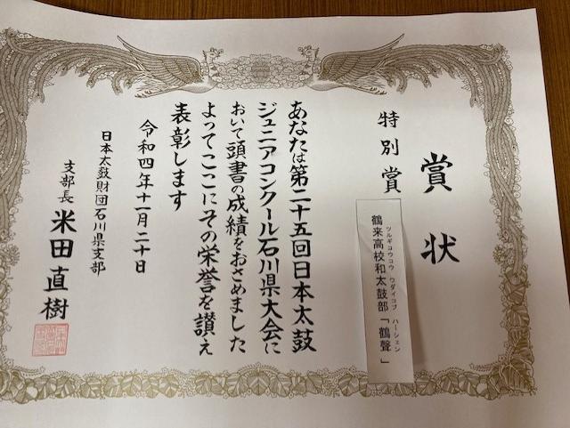 今日は朝から表彰状がたくさんあり、生徒の頑張りに感謝です。特に和太鼓部がジュニアコンクールで特別賞に輝いたことが、北國新聞の記事にも掲載されていました。