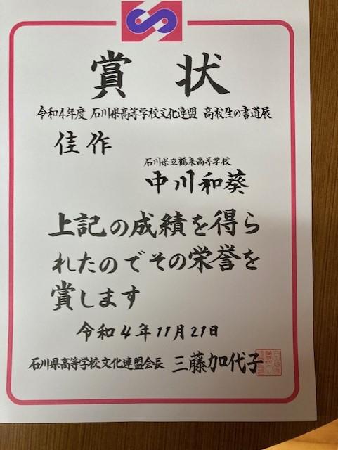 今日から12月となりました。一気に気温も下がり、冬らしくなってきましたが、書道部の活躍が凄いです。