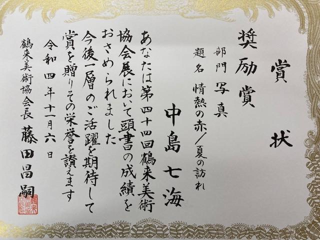 仁尾君、中山君、向井君、中林さん、川幡君、中川拓斗君、中川和葵君、日本学書展入選おめでとう。