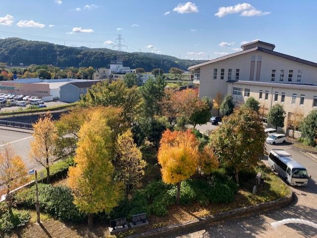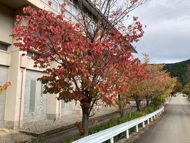 本校は白山ジオパーク内に在しており、県内でも有数の学習環境を備えております。今は校舎周辺の木々が紅葉真っ盛りです。