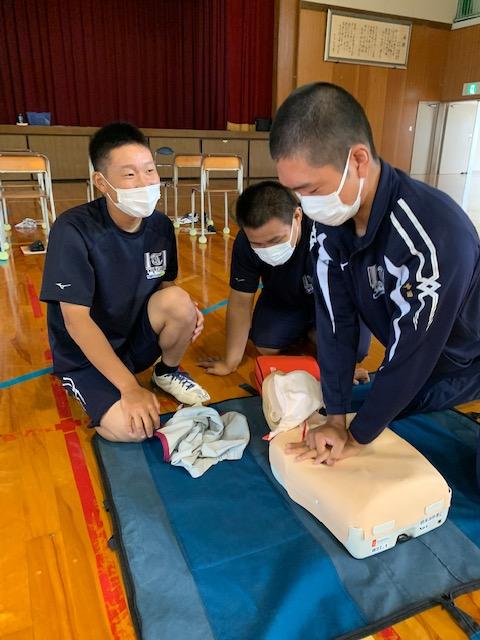 救急救命講習を受ける2年生のスポーツ科学コースの生徒達